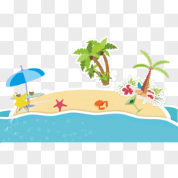 卡通手绘夏日海边沙滩免抠元素