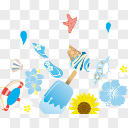 海滩儿童防溺水游泳圈救生圈手绘卡通沙滩元素