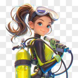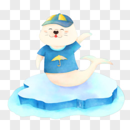 3D卡通风海洋日小女孩骑海豚在水面滑行免抠元素
