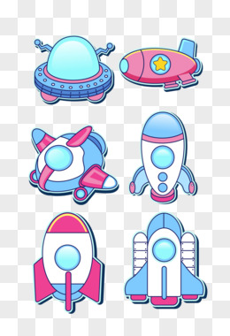 一组卡通创意外太空宇宙飞船贴纸合集素材