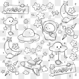 卡通手绘可爱宇宙线描底纹素材
