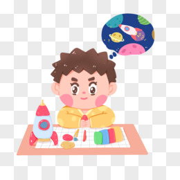 手绘卡通小男孩玩手工黏土素材