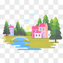 卡通手绘春天植物小河流元素