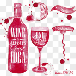卡通手绘野餐踏青贴纸套图之红酒元素