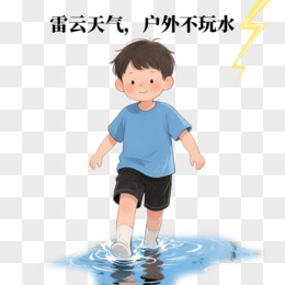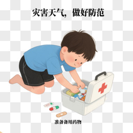 手绘卡通夏季自然灾害预防防范场景免抠元素