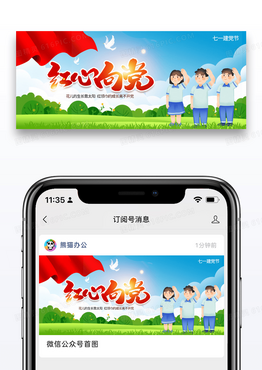 时尚卡通红心向党建党节微信公众号封面配图图片