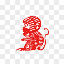一组卡通剪纸风十二生肖套图之剪纸猴免抠元素