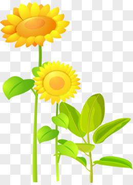 手绘卡通小清新花丛花朵向日葵植物装饰免抠素材