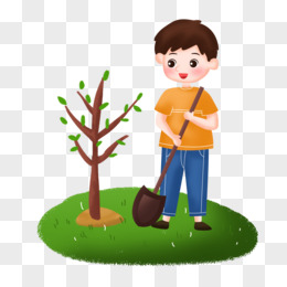 植树节之手绘卡通男孩种树