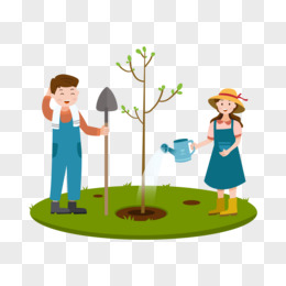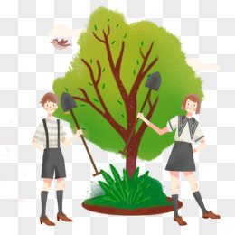 植树节卡通植树男孩女孩