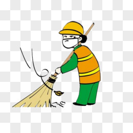 卡通手绘清洁工扫地免抠元素