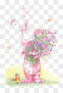 一组手绘卡通动物庆祝生日派对之河马拿鲜花素材