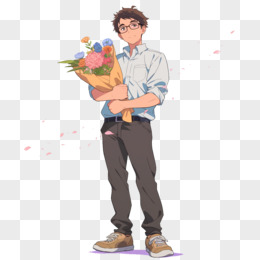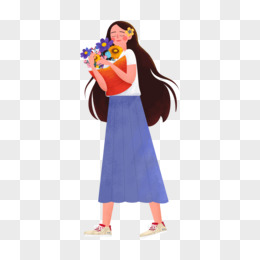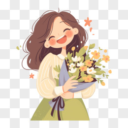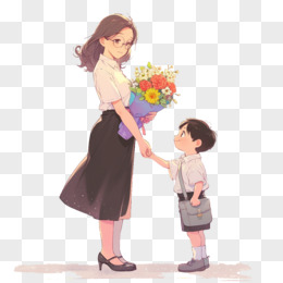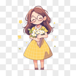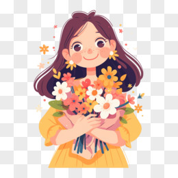 卡通风教师节抱着一束花的可爱女教师形象免抠元素