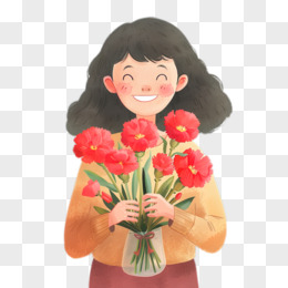 母亲节妈妈拿着一束康乃馨开心的笑免抠元素