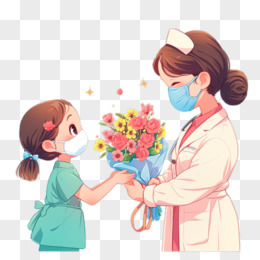 卡通风一对情侣探望躺在床上的女孩免抠元素
