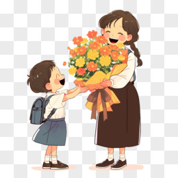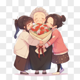 卡通风教师节学生给年迈的老师送花场景免抠元素