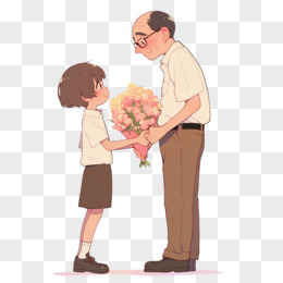 卡通风教师节学生给年迈的男老师送花免抠元素