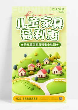 卡通多巴胺儿童风家具促销活动海报