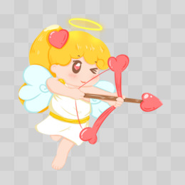 卡通手绘丘比特拿弓箭射爱心