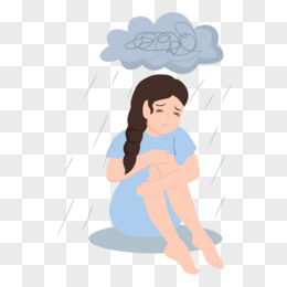 卡通手绘女生心里抑郁无人倾诉免抠元素