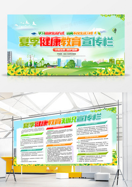 蓝色卡通风格2022年夏季健康教育宣传栏
