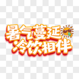 暑气蔓延冷饮相伴卡通字