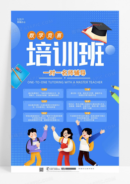 蓝色卡通数学竞赛培训班课程辅导海报