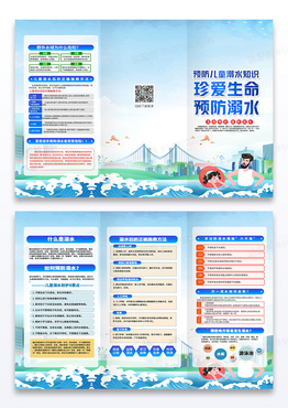 蓝色简约卡通中小学生防溺水安全教育三折页
