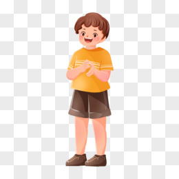 卡通手绘男孩站着拍手免抠元素