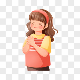 手绘卡通女孩鼓掌免抠元素