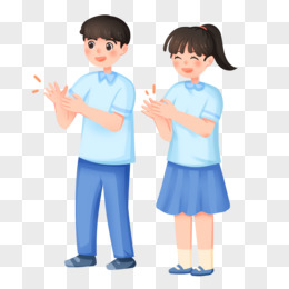 手绘卡通学生鼓掌免抠元素
