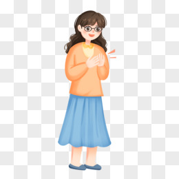 手绘插画鼓掌的女老师人物免抠素材