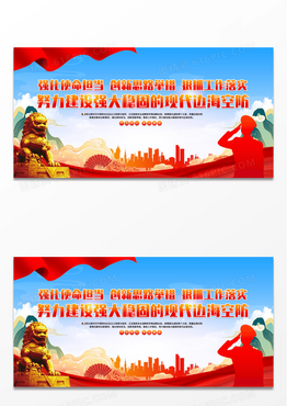 简约大气卡通党建现代边海空防建设党建展板军队文化展板