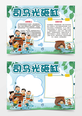 司马光砸缸成语故事寓意卡通可爱人物手绘手抄报