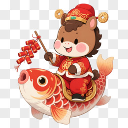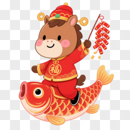 卡通手绘锦鲤和马年可爱小马免抠元素