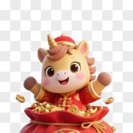 Q版可爱3D马年卡通马形象免扣元素之福袋钻出可爱马