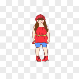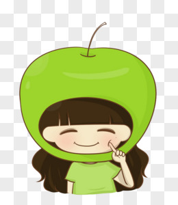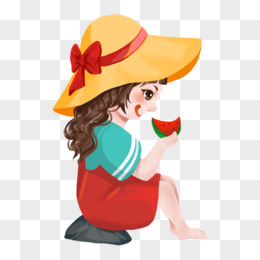 卡通手绘女孩戴帽子吃西瓜免抠元素