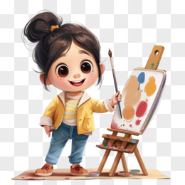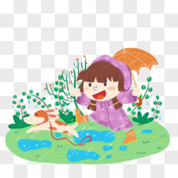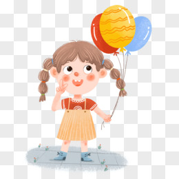 手绘卡通坐在小板凳上的小女孩免抠元素