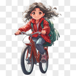 卡通手绘风格骑单车上学的可爱小女孩免抠元素