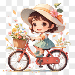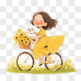 卡通风宠物女孩骑着自行车带着小白狗免抠元素