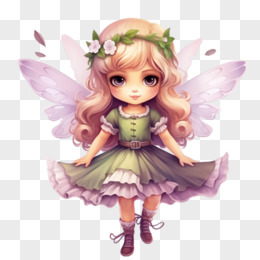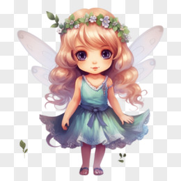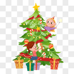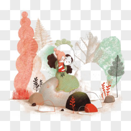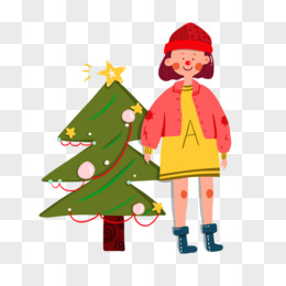 手绘插画风圣诞树下的小女孩和精灵免抠元素