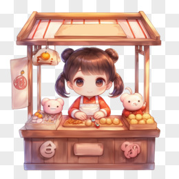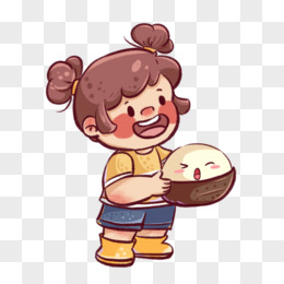 卡通手绘免抠可爱的为小女孩捧着一碗汤圆免抠素材