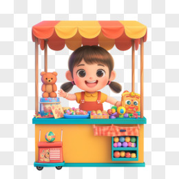 手绘卡通小女孩玩斗鸡游戏场景免抠元素