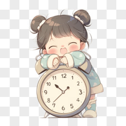 卡通一个可爱的小女孩趴在闹钟上免抠元素