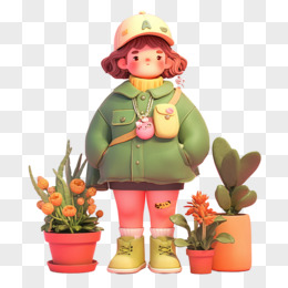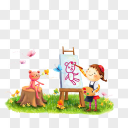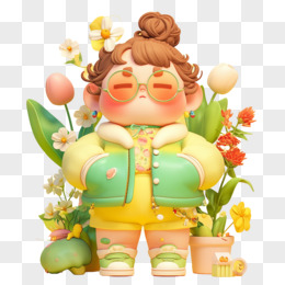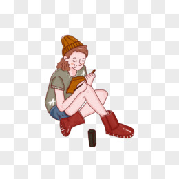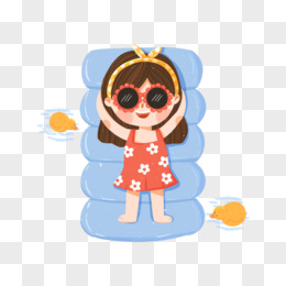 卡通手绘可爱晒日光浴的小女孩插画元素