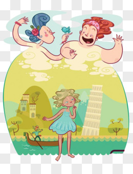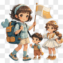 卡通手绘可爱小姐姐导游带着孩子们旅游元素