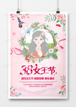 粉色插画卡通小清新三八女王节海报
