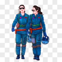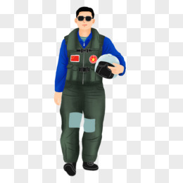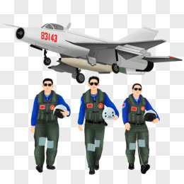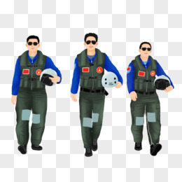 一组卡通线描风海陆空三军人物形象之飞行空军元素