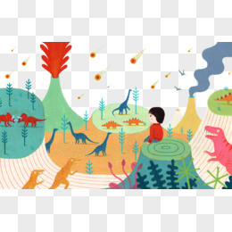 卡通手绘汽车树小鸟鲸鱼猫头鹰恐