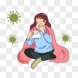 卡通手绘女孩得过敏性鼻炎免抠元素